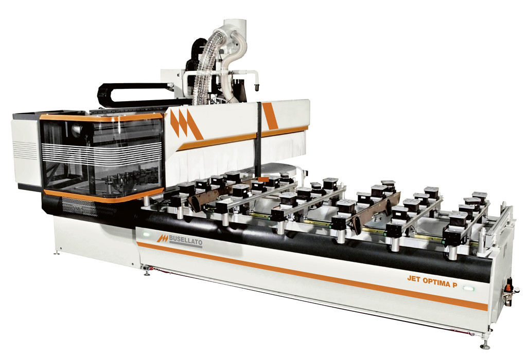 3 veya 4 eksen (5. pozisyonlamalı eksen) CNC işlem merkezi. Mobilya aksamı, masif ahşap elementli iç kapı ve merdiven aksamları, bar ve mağaza mobilya ekipmanları ve çok kalın parçaları işlemek için kullanılabilir.